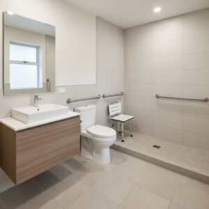Bathrooms are where accessibility planning makes the biggest day to day difference; water, tight spaces, and hard surfaces don’t forgive many mistakes.