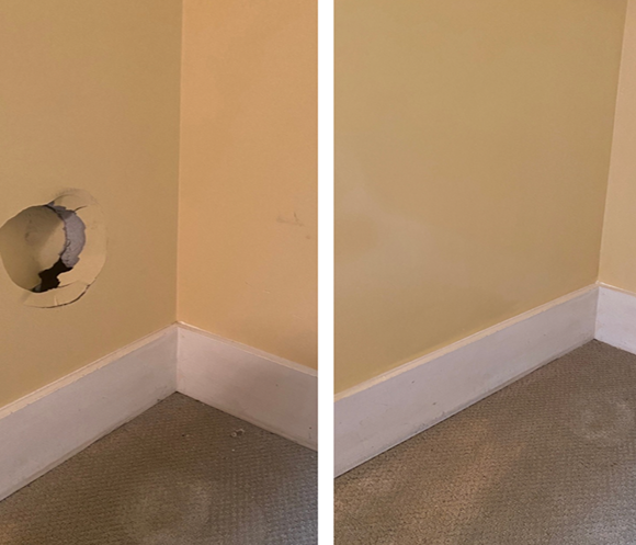 Patching holes, dents, cracks, and anchor damage with proper prep so the wall looks normal again and doesn’t turn into a visible “quick fix” later.