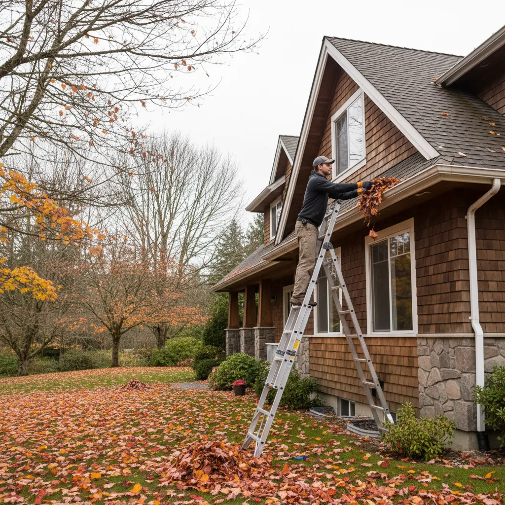 Clearing gutters each fall helps keep water away from your roof, fascia, and foundation during Vancouver’s rainy season.