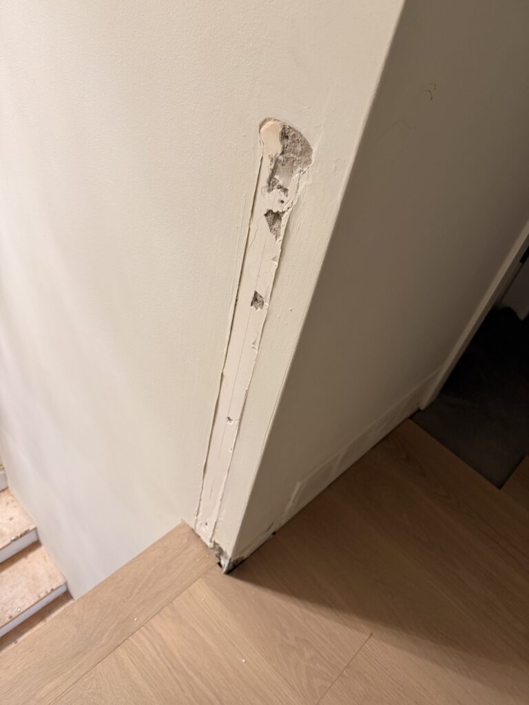 If the baseboards were scratched or cracked during the railing removal, use caulking or compound to fill small defects. For deeper damage, rebuild the profile using compound and sand until the shape matches the original trim.