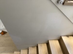 Cover stairs, floors, and railings with clean drop sheets. This prevents dust and compound from spreading and keeps the workspace tidy.
