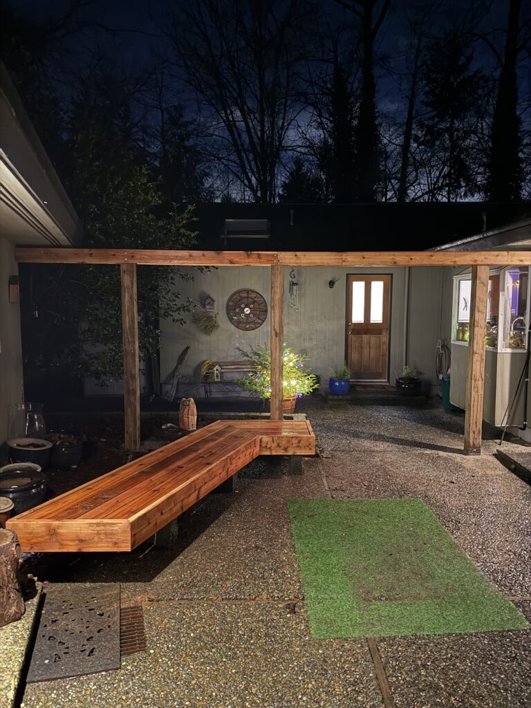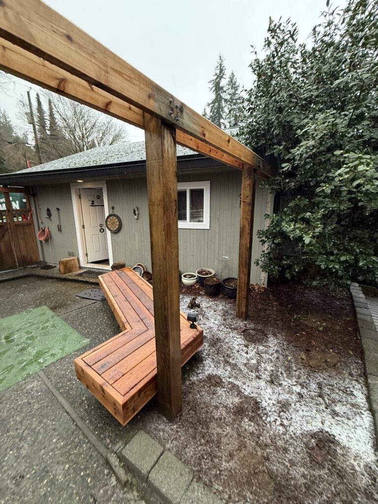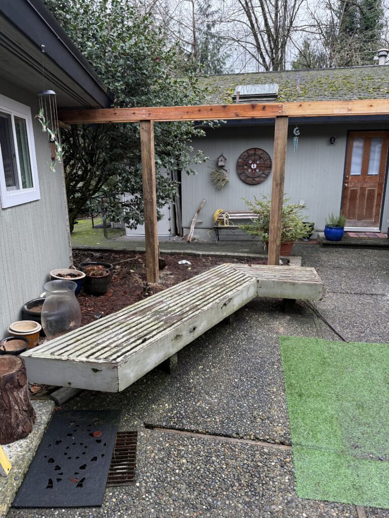 The current backyard bench and trellis structure has reached the end of its usable life. We’ll remove the existing bench, trellis beam, and three posts, then clear and prep the patio and garden area so it’s ready for a stronger rebuild. We’ll also shift the partition wall to the side so you can see past the structure through the window and get your view back.