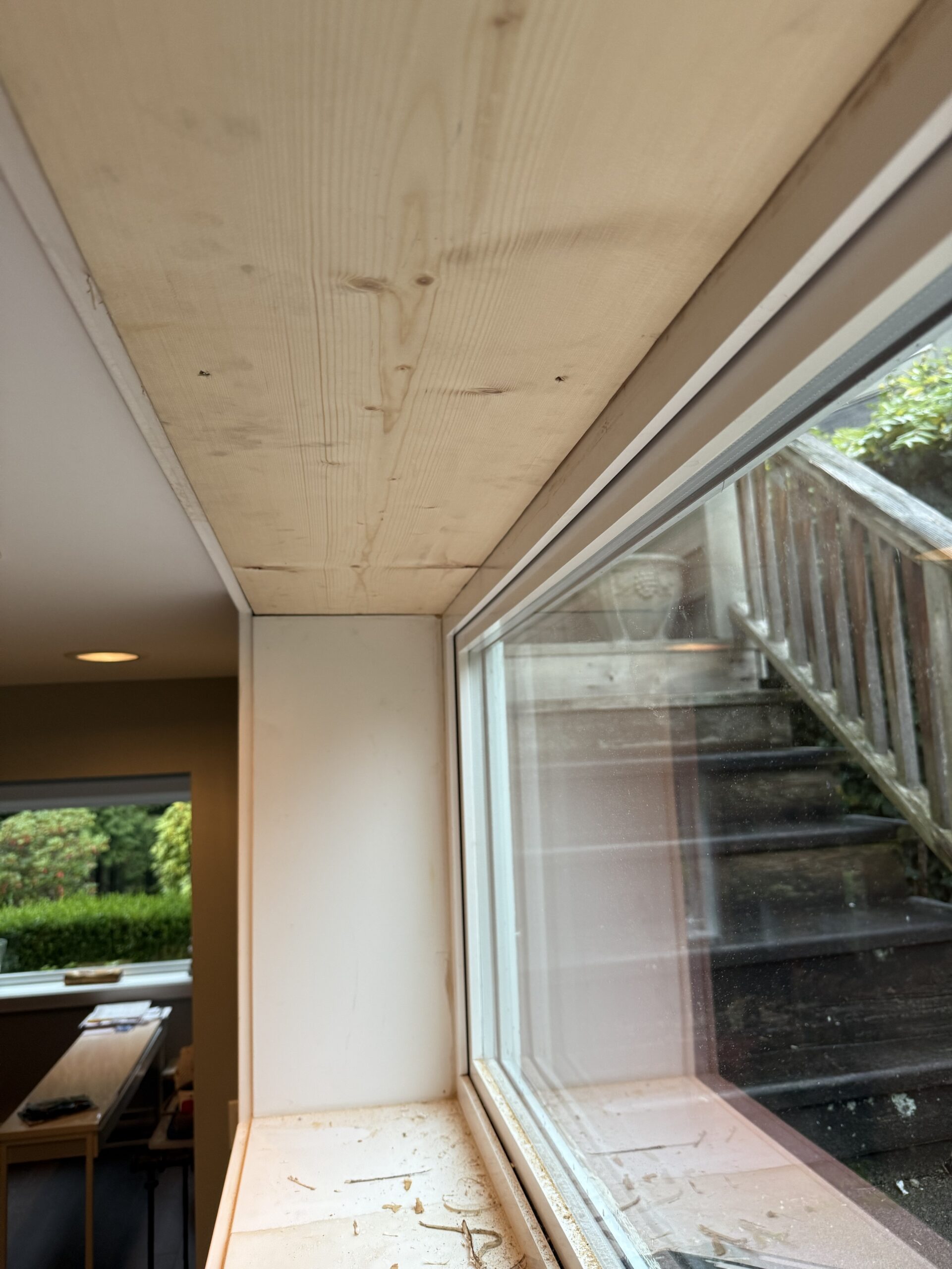 The new trim was securely fastened, fully caulked along all seams, and primed for a smooth, paint-ready finish. Once complete, the area looked seamless and ready for final painting.